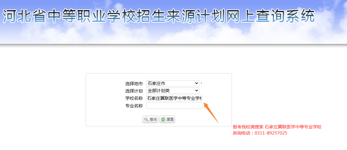 石家庄冀联医学中等专业学校2023年中职招生计划网上官方查询渠道石家庄冀联医学中等专业学校2023年中职招生计划网上官方查询渠道 2023年河北省教育考试院公布了 河北省中等职职业学校招生来源计划查询,学生可以根据自己报考学校查询代码,没有查询到的学校要谨慎报考了。 报名石家庄冀联医学中等专业学校的学生,你在学校名称处打出学校的全称。点击下面的查询按钮进入下一步 这里是石家庄冀联医学中等专业学校所有的招生专业和专业代码,学生可以在填报职业的时候选择,也可以来校直接报名。 分数在300分左右的学生以来校报名为主,分数高的可以填报志愿。以预交1000学费收到通知书为准。 截止目前2023年招生计划已经超过1000人,如果你有意向学医有计划来我们学校,那就请提前联系杨老师安排参观和报名吧! 华体汇登录首页3+2 、3+3、3+4升学班限额招生中! 咨询电话:0311-89257025、13383115636 、15383298687 微信号:13383115636 杨老师、15383298687李老师 抖音号:sjzjilian 快手号: vx-13383115636 了解更多专业详情可点击查看>>华体汇登录首页招生简章 ![]() 相关阅读: