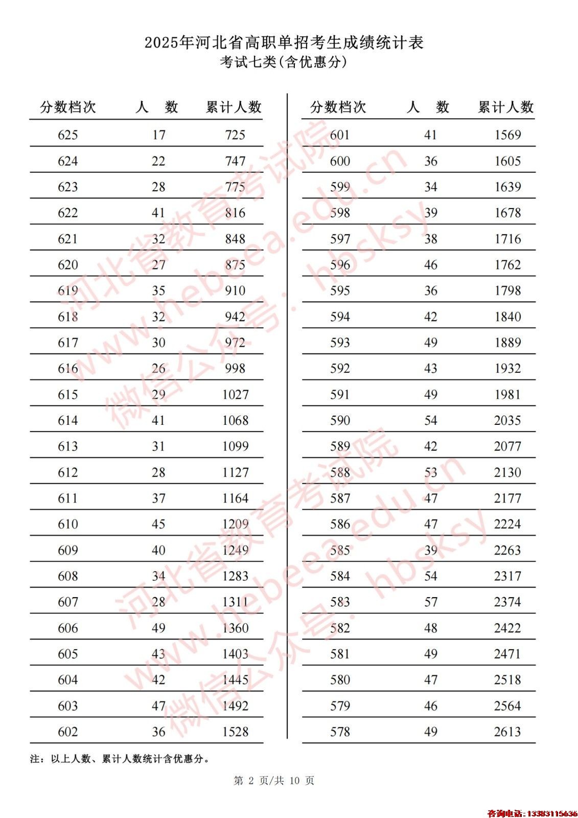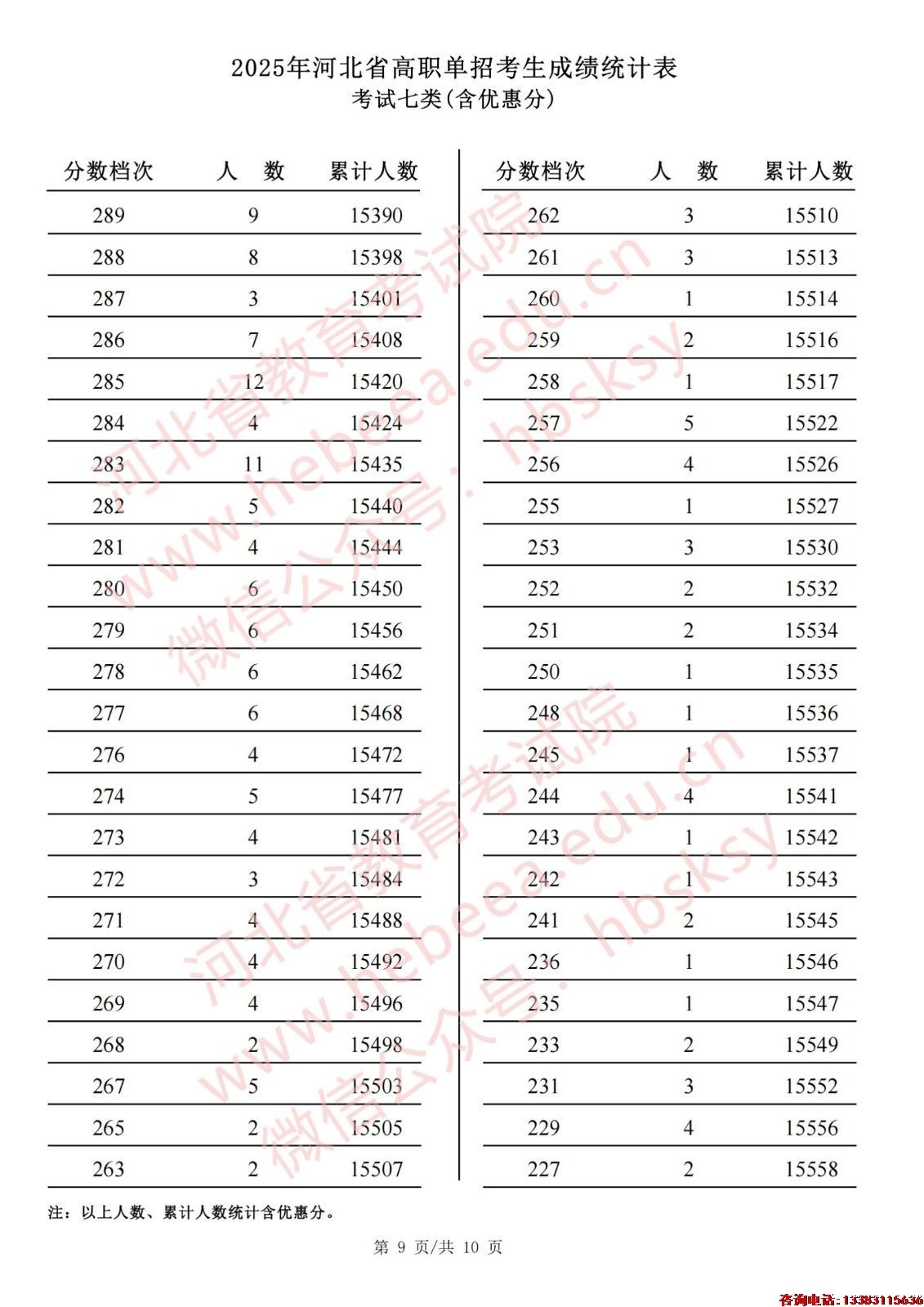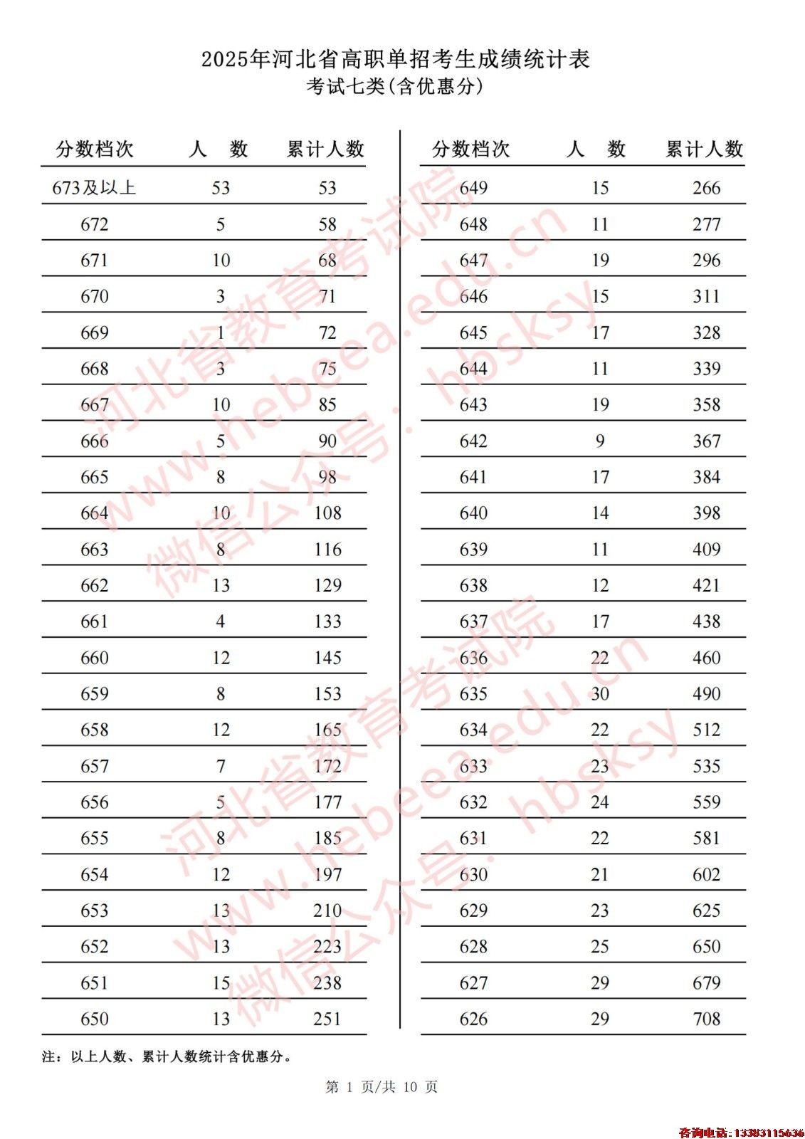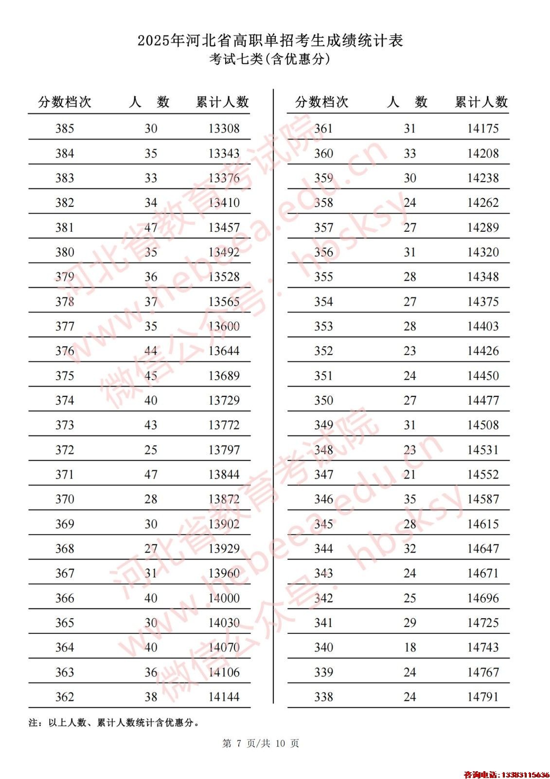 单招七类|2025年河北单招第七大类成绩统计一分一档表