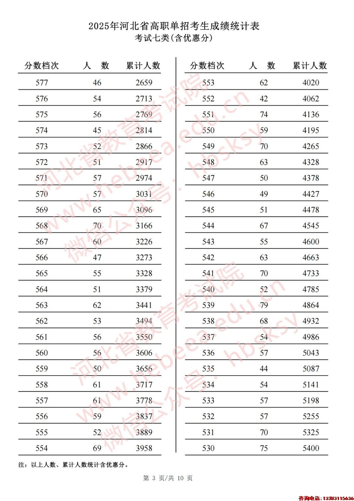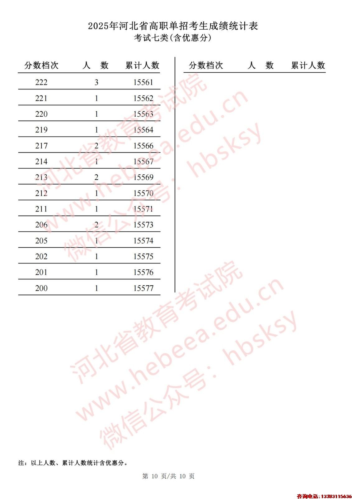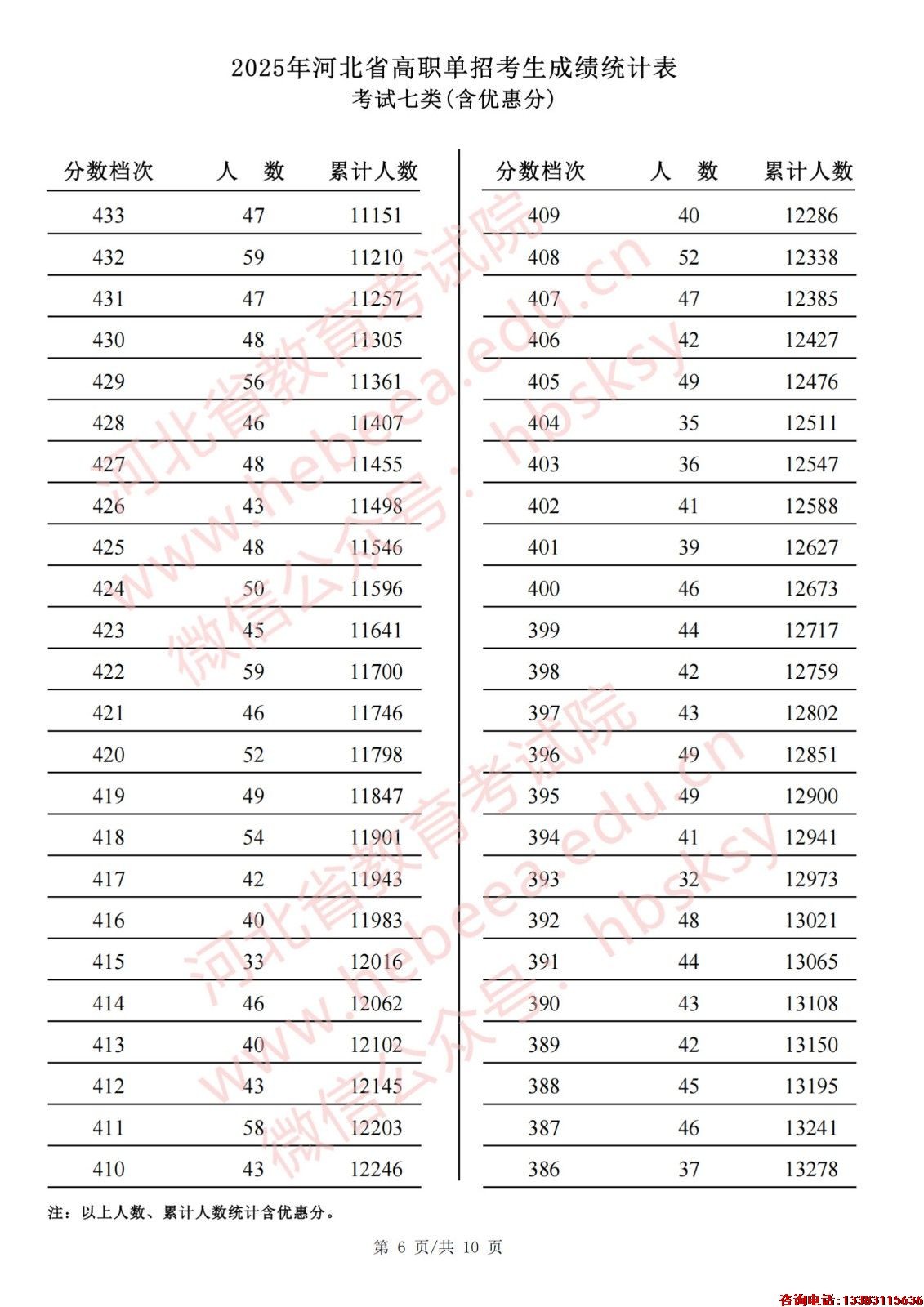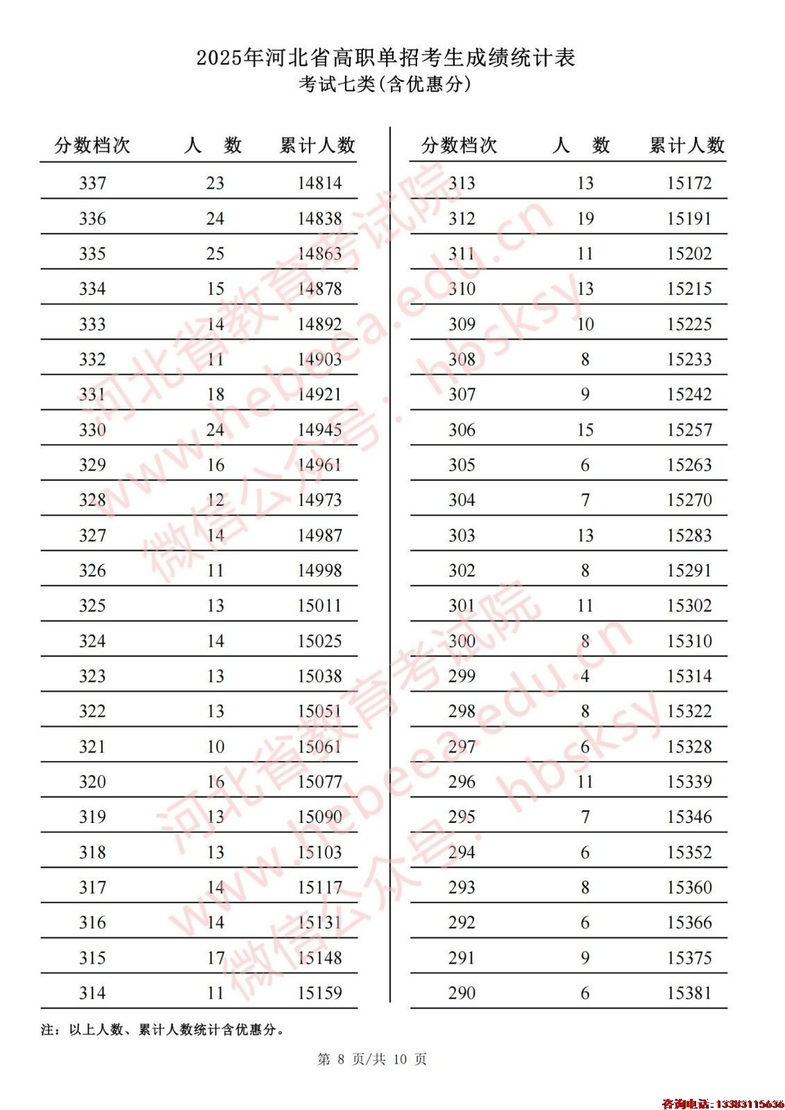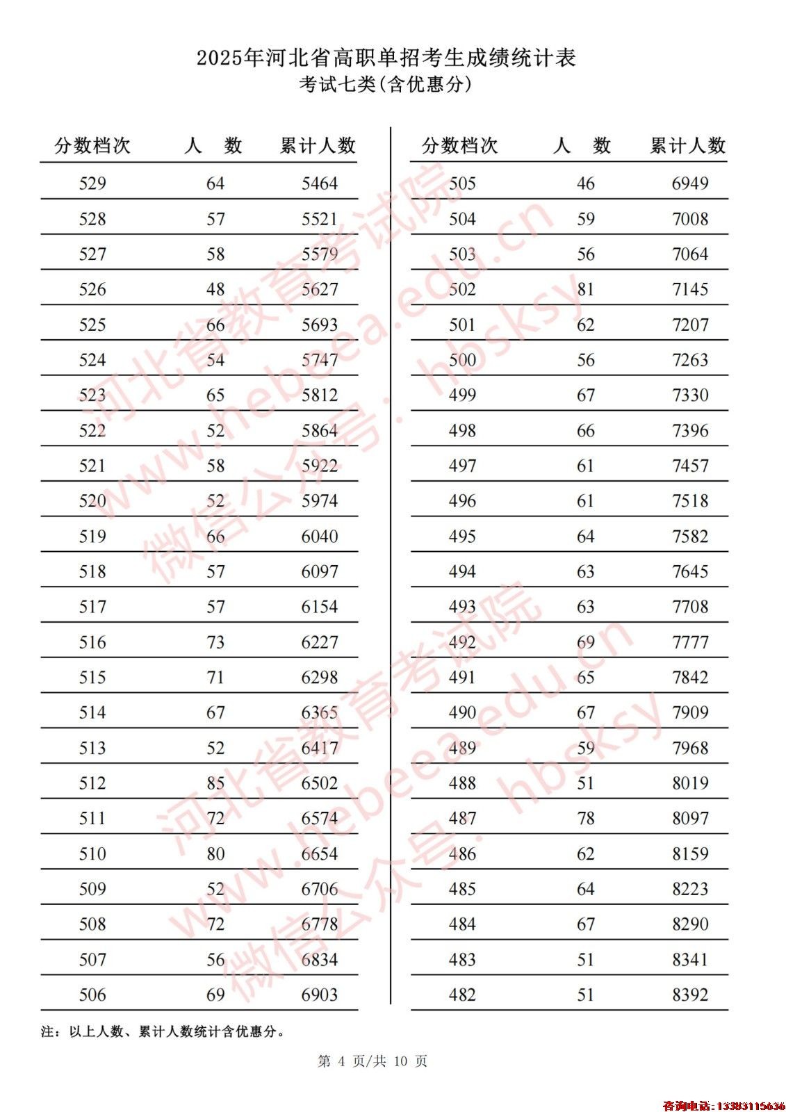 单招七类|2025年河北单招第七大类成绩统计一分一档表