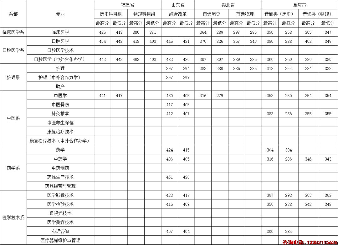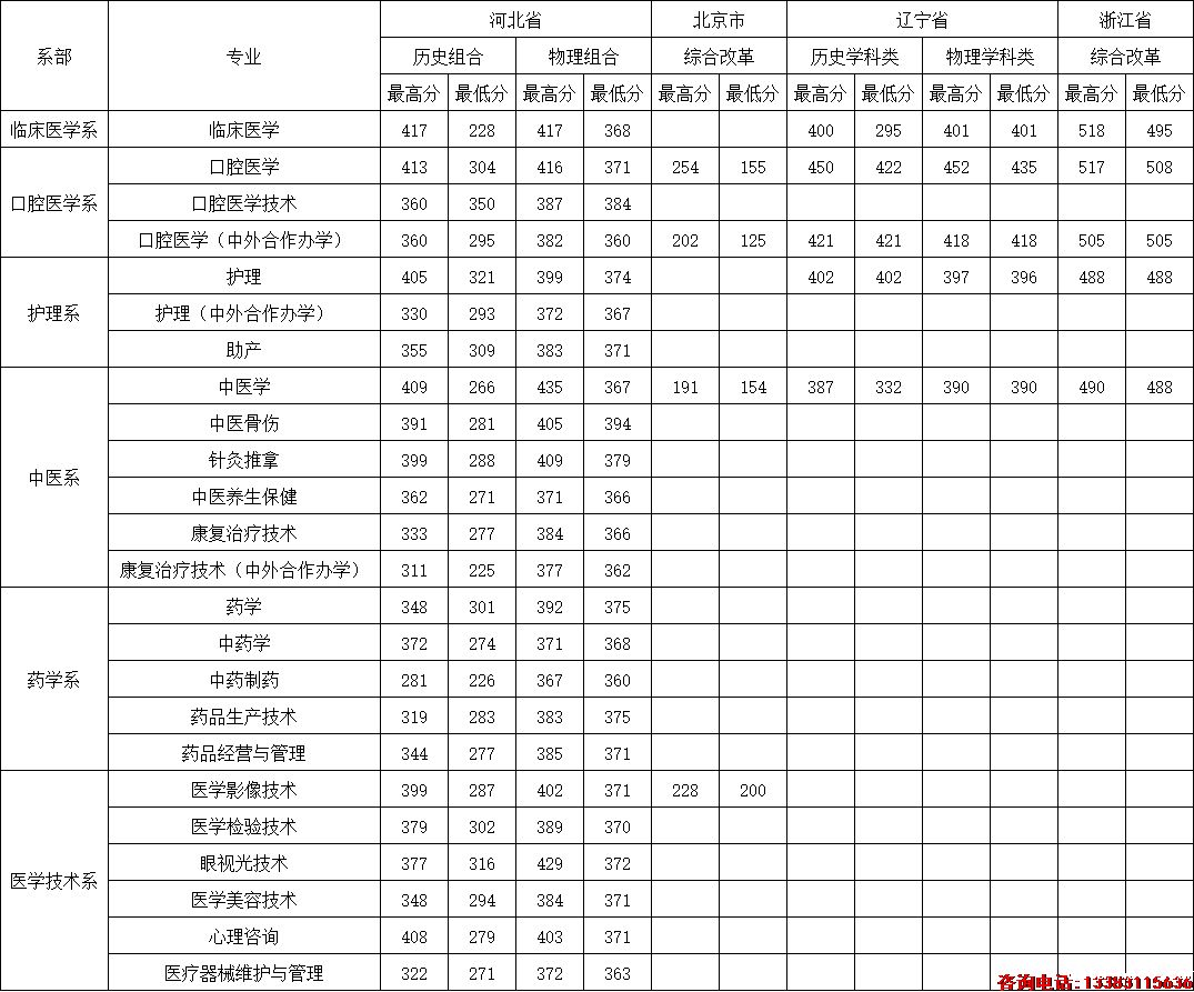 石家庄医学高等专科学校往年全国各省录取分数线石家庄医学高等专科学校2022年全国各省录取分数线